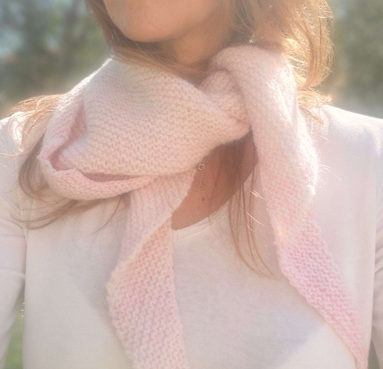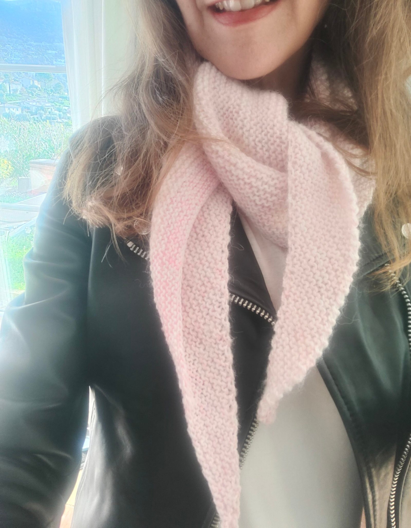 Réalisez votre « doudou » avec un subtil mélange de mérinos et d’alpaga. Il est d’une telle douceur que vous n’aurez qu’une idée, vous envelopper dedans. Son design alliant diminutions d’un côté et augmentations de l’autre, lui donne une originalité de style avec sa forme en triangle asymétrique et sa délicate bande rose sur l’une des bordures.